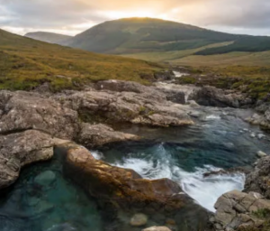 Day 7 — The Isle of Skye We begin the day with a leisurely breakfast before heading north on the Isle of Skye. Our first visit is to the Fairy Pools — a series of clear pools and waterfalls set beneath the Cuillin Hills. These crystal-clear waters are long regarded as a place of spiritual healing and are steeped in fairy lore, contributing to Skye’s reputation as a deeply enchanted landscape.